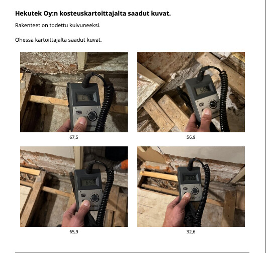 Tekninen isännöitsijä kuitenkin tulkitsee, että rakenne olisi jo kuiva näiden arvojen perusteella.